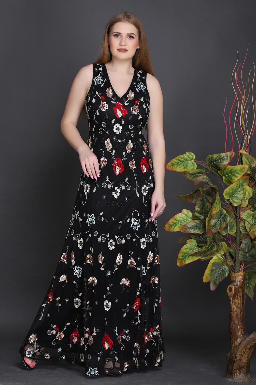 Black sleeveless , A line maxi length gown with floral work sequin.